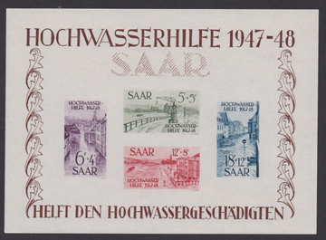 Hochwasserhilfe-Blockpaar postfrisch (Bl. 2 Fingerabdruck), Block 1 Type III mit "Riss im Landtagsgebäude", Bl. 2 Type VIII. Mi. 1700,-