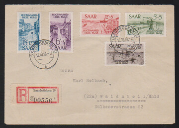 Hochwasserhilfe komplett auf Satz-R-Brief aus Saarbrücken, 15.10.48, Mi. lose 500,-