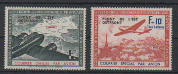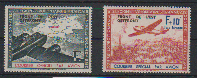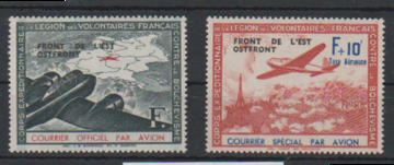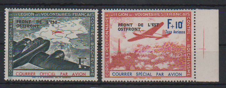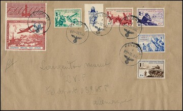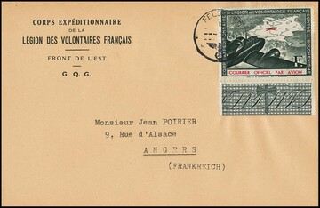 Legionsausgaben, Flugpost-Vignette + 10 Fr., nebst kpl. Serie "Legionäre an der russischen Front", auf Feldpostbrief mit FP-Stempel vom 20.10.42 an eine FP-Nr. mit rs. Ankunftsstempel