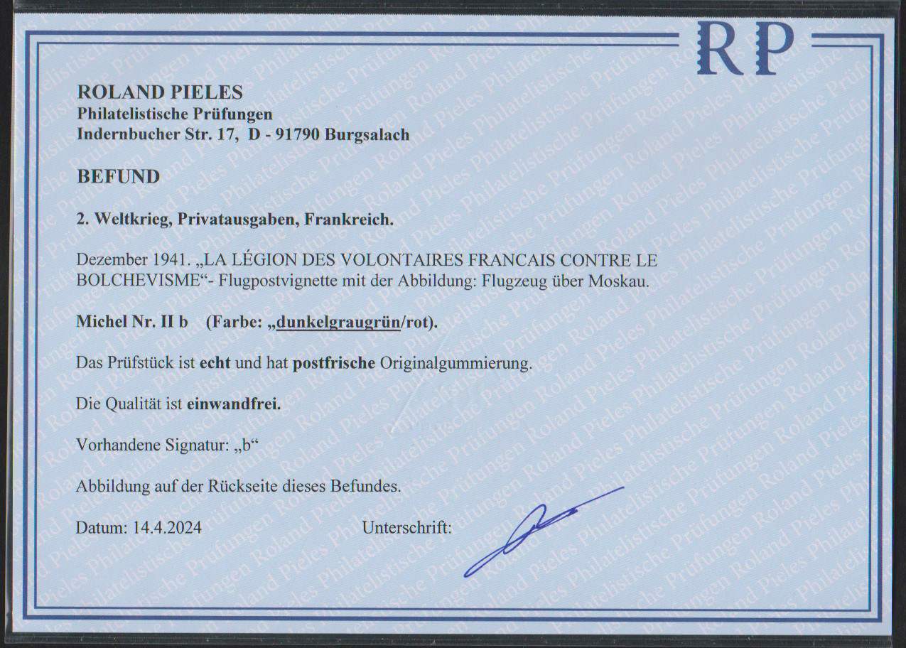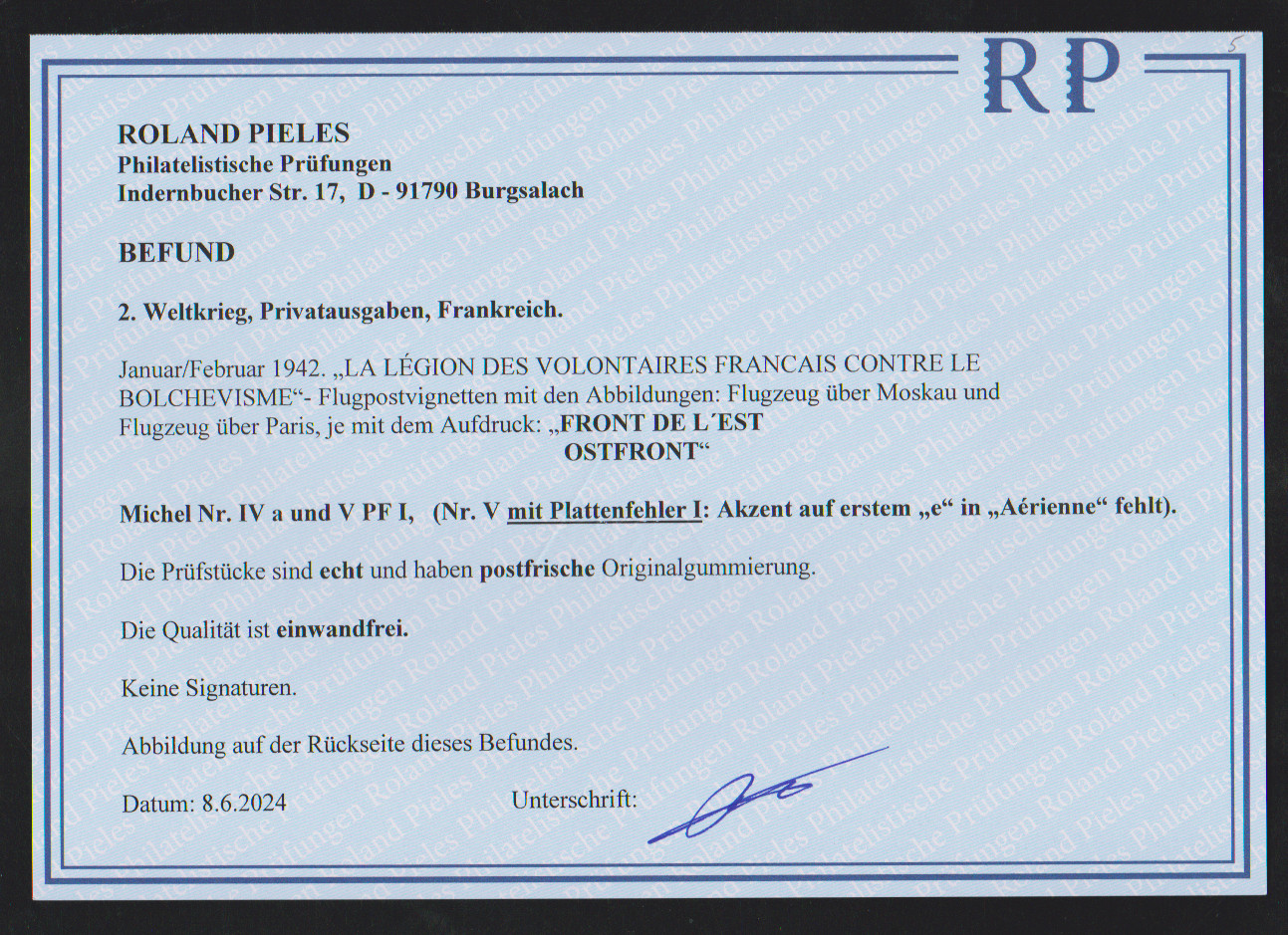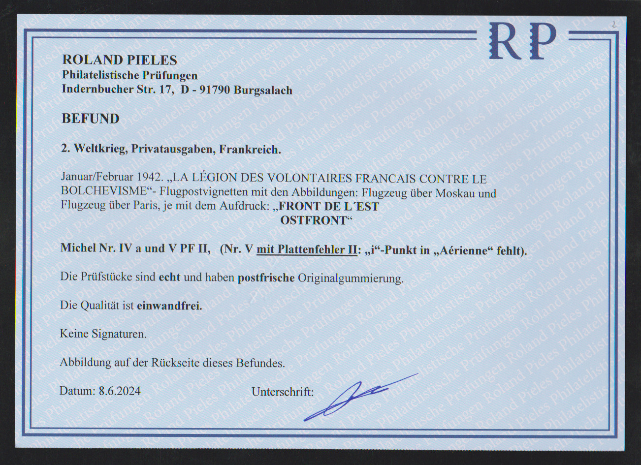 Legionsausgaben, beide Flugpost-Vignetten postfrisch, dabei Nr. III PF II und V PF IV. Mi. 310,-, je Fotoexp. Pieles