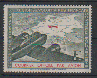 Legionsausgaben, Flugpost-Vignette F + 10 F. postfrisch mit Plattenfehler V, Mi. 200,-, Fotoexp. Pieles