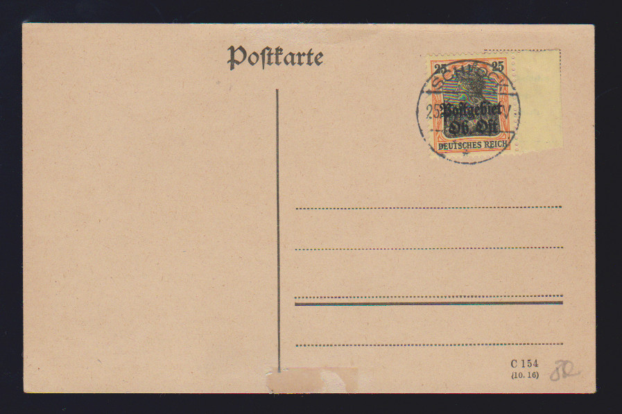 25 Pfg. vom Rand auf Blanko-Postkarte mit Luxus-Abschlag des seltenen Stempels "Schlock" v. 25.9.18