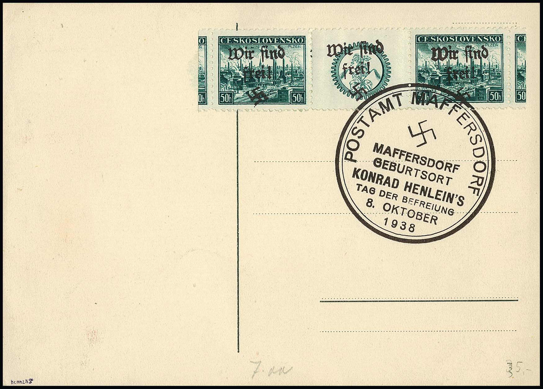 Maffersdorf 50 H. Ausstellung Pilsen im Zwischenstegpaar auf blanko gest. Karte, sign. Behrens. Mi. lose 300,-