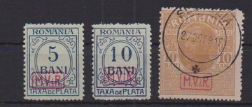 Portomarken 5 und 10 B. postfrisch, sign. Hochstädter, sowie Zwangszuschlagsmarke 10 B. auf gutem y-Papier gest. Mi. 270,-