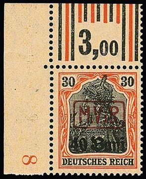 "M.V.i.R."-Aufdrucke als postfrische Oberrandstücke, 15 und 40 B. je Walze-Eckrand, letztere gute Walzen-Variante, Mi. 309,- +
