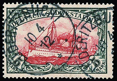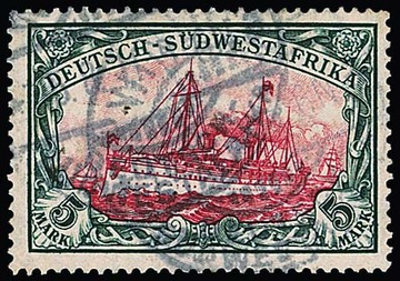 5 Mk. klar gestempelt "Lüderitzbucht", sign. Steuer. Mi. 370,-