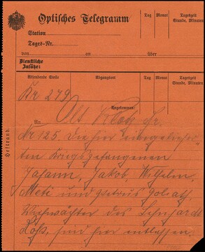 1906, seltenes "Optisches Telegramm" (kl. Randmgl.) mit Text betr. Kriegsgefangenen, aus "Kt." (Keetmanshoop)