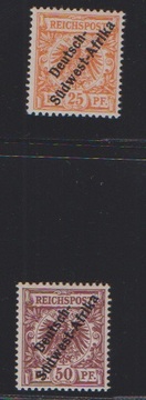 1916-1919, je aptierte Deutsche Kolonialstempel auf vier Belegen, "Swakopmund" (auf Aufbrauchs-Ganzsachenkarte 5 Pfg.), "Deutsch" gestrichen, mit 2 1/2 P. ZuF, BP-Ovalstempel "Windhoek" teilaptiert auf zwei Ganzsachenkarten (einmal mit Zensur), sowie K1 "Outjo" teilaptiert