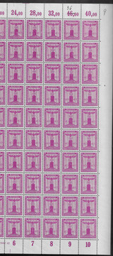 40 Pfg. Parteidienstmarke, kpl. postfrischer Bogen, oben auf Feld 9 falscher Reihenwertzähler "46" (hs. in "36" korrigiert), Mi. rund 1150,-
