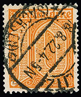 10 Pfg. orange klar gestempelt, sign. Infla, Düntsch. Mi. 600,-