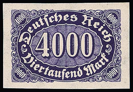4000 Mk., Abart ungezähnt tadellos postfrisch, sign. Peschl. Mi. 150,-