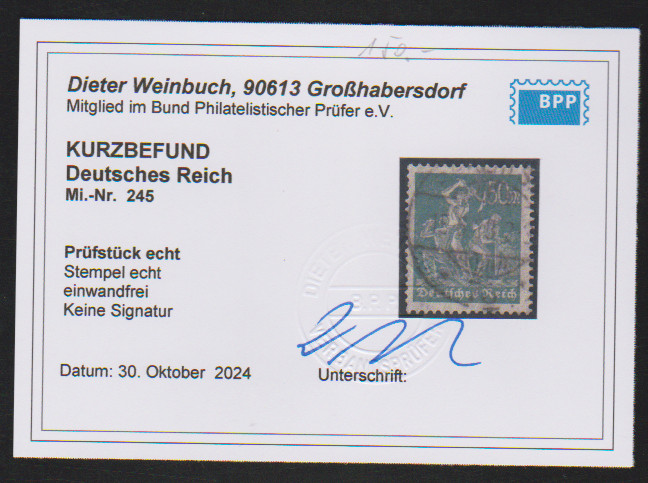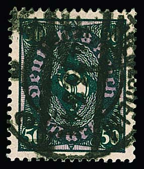 50 Pfg. mit Vierpaß-Wasserzeichen tadellos gestempelt, sign. Oechsner, Infla und Attest Tworek. Mi. 1100,-