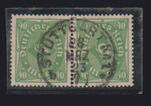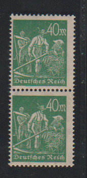 40 Mk., senkrechtes postfrisches Paar, untere Marke mit Plattenfehler "mittlerer Strich im M gebrochen", sign. Winkler. Mi. 150,-