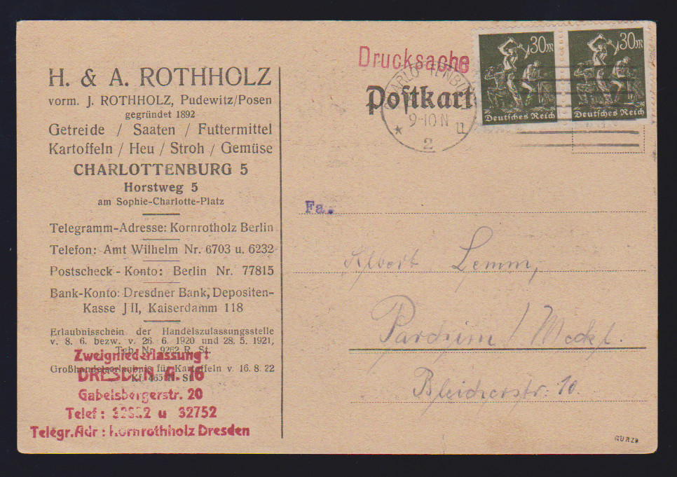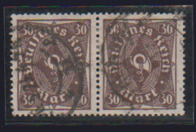 30 Mk. schwarzoliv im Paar als MeF auf Bedarfspostkarte, sign. Bauer, Kurze