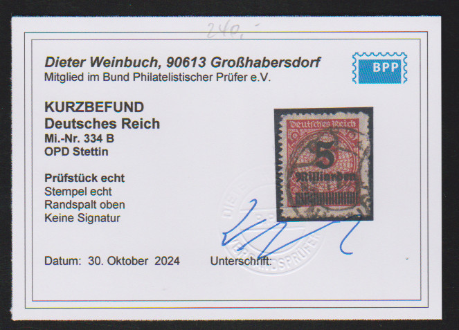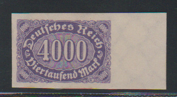 4000 Mk., Abart "ungezähnt" als postfrisches rechtes Randstück, sign. Winkler. Mi. 150,-