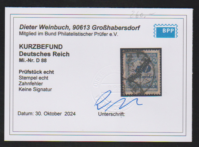 50 Mk. tadellos gest., dazu 5 Milld. a. 10 Mio. Mk. mit kleinem Randspalt oben, sowie Dienst Nr. 88 (kl. Zf.), je Fotoexp. Weinbuch. Mi. 650,-