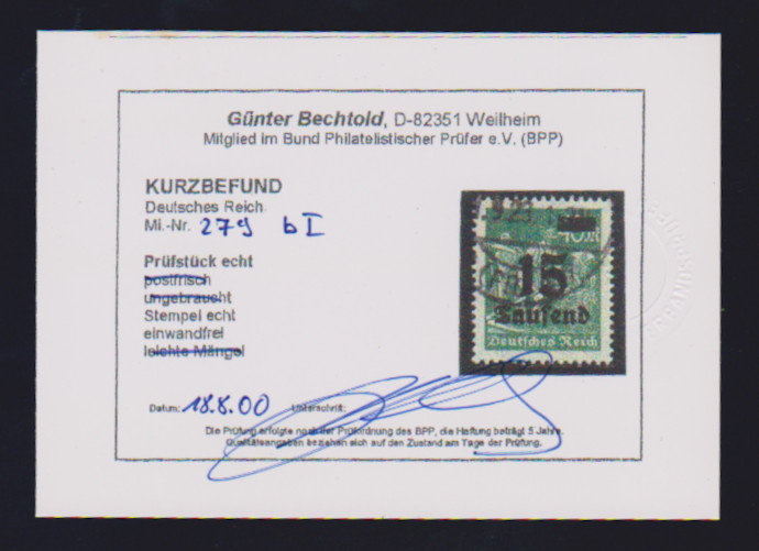 15 T. a. 40 Mk. mit Aufdruckfehler "1 ohne Anstrich" gest., Fotoexp. Bechtold. Mi. 200,-