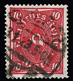 10 Mk., gute Variante ohne sichtbaren Unterdruck sauber gest., sign. Infla, Schulze. Mi. 1300,-