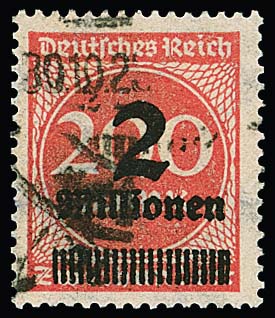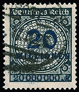 20 Mio. Mk. schwarzblau tadellos gestempelt, sign. Infla, Peschl. Mi. 2200,-