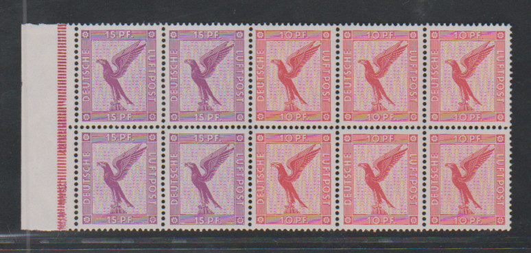 Flugpost 15 und 10 Pfg., postfrisches Heftchenblatt, Mi. 500,-