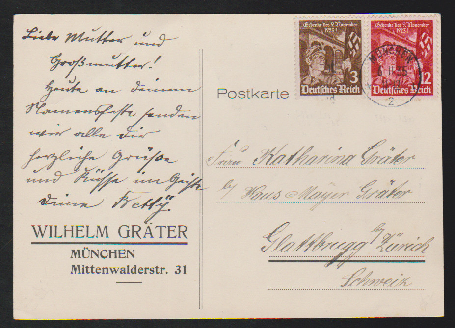 Fünf bessere Belege: Nr. 363 als EF (zweimal, innen und aussen auf dopp. verw. Brief), Nr. 375 (Bogenecke) bis 377 auf Luopbrief, Nr. 525 als MeF per drei, Nr. 598-99 auf Zweittags-Auslandskarte, sowie Nr. 614 auf Auslandskarte