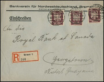 1924-32, 100 Briefe bzw. teils Drucksachen, alle nach Britisch-Guyana gelaufen, teils übliche Gebrauchserhaltung, aber Post aus dieser Zeit mit dieser Destination ist sehr selten!