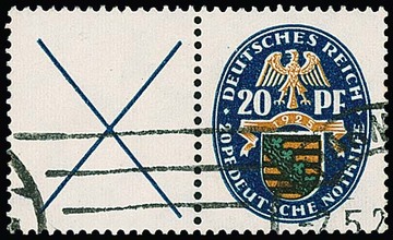 20 Pfg. Nothilfe, waagerechter Andreaskreuz-Zusammendruck gestempelt, Mi. 700,-