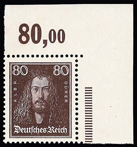 80 Pfg. Dürer, postfrische rechte obere Bogenecke, Mi. 1000,- +