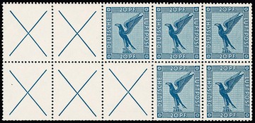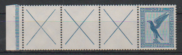20 Pfg. Flugpost, Randleisten-Zusammendruck mit drei Andreaskreuzen postfrisch, Mi. 200,-