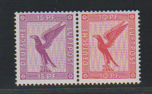 15 und 10 Pfg. Flugpost, Zusammendruck W22 postfrisch, Mi. 180,-
