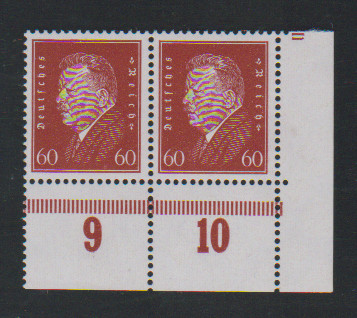 60 Pfg. Ebert im postfrischen Paar aus der rechten unteren Bogenecke, Mi. Normalmarken 280,- +
