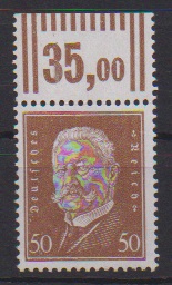 50 Pfg. Hindenburg, postfrisches Walzendruck-Oberrandstück, sign. D. Schlegel. Mi. 300,-