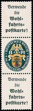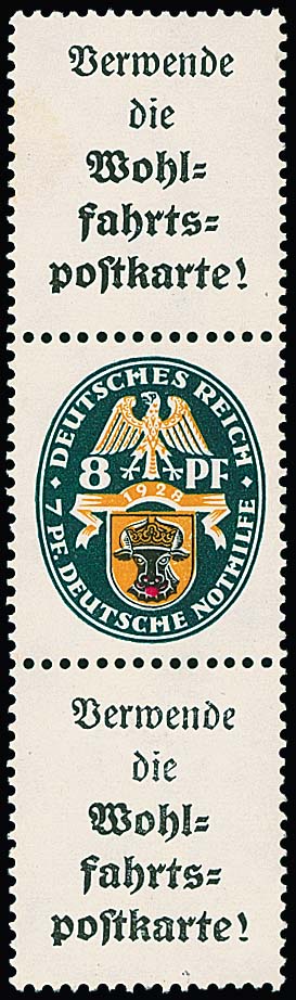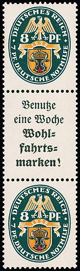 8 Pfg. Nothilfe, senkrechter Zusammendruck postfrisch, das obere Reklamefeld am Rand gering gelblich, Mi. 1800,-