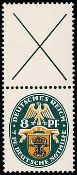 8 Pfg. Nothilfe, senkrechter Andreaskreuz-Zusammendruck postfrisch, Mi. 1400,-