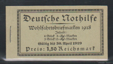 Nothilfe 1928, Markenheftchen 27.1 (mit Heftchenblatt 63B) postfrisch, Mi. 900,-
