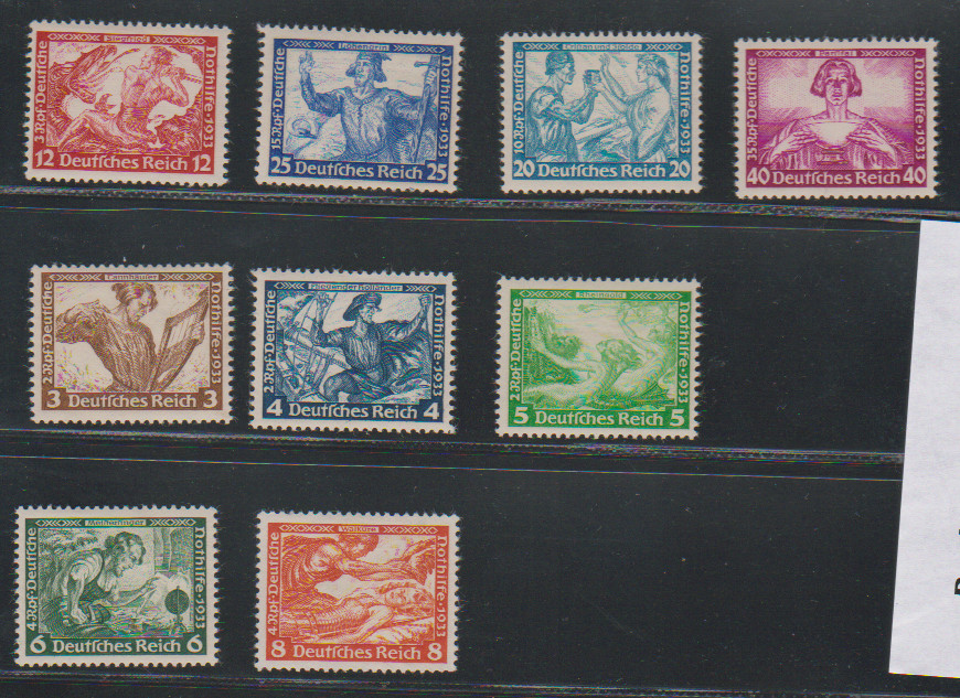 Hindenburg, fünf bessere Belege: Nr. 515 als EF auf unzulässiger Retour-Auslands-Drucksache, Nr. 522 als EF auf Zensur-Retourbrief, 9.5.40 (einen Tag vor Beginn der Offensive) nach Belgien, Nr. 524 als EF auf Eil-R-Brief "Frei durch Ablösung" (nur R-Gebühr frankiert, sonst portofrei), ferner als MeF auf Eil-Päckchen-Adresse, sowie Nr. 525 als EF auf Auslands-R-Brief zum Sonderporto nach Ungarn