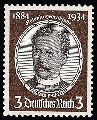 3 Pfg. Kolonialforscher in guter Farbe postfrisch, sign. Schlegel. Mi. 1400,-