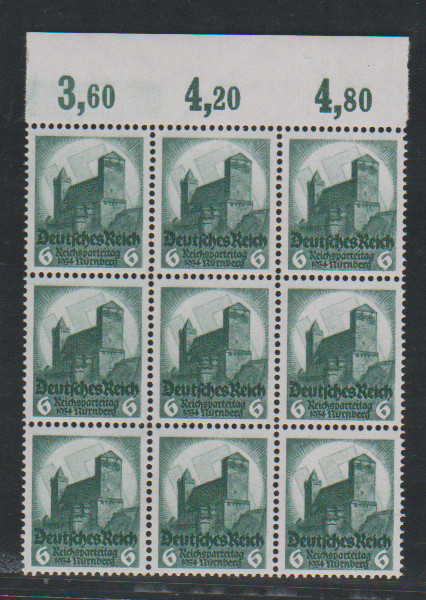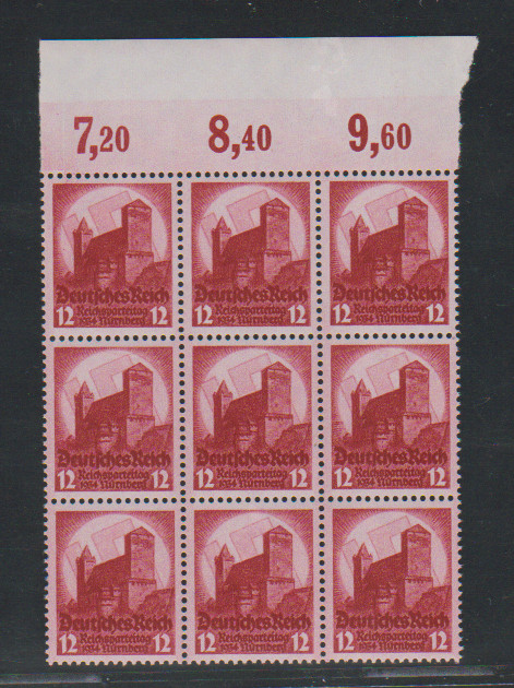 Reichsparteitag Nürnberg in postfrischen Oberrand-Neunerblöcken, Mi. 765,- +