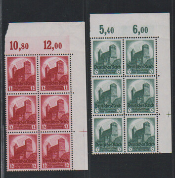 Reichsparteitag in postfrischen Eckrand-Sechserblöcken re. oben mit Passerkreuz im Rand, Mi. 510,- +