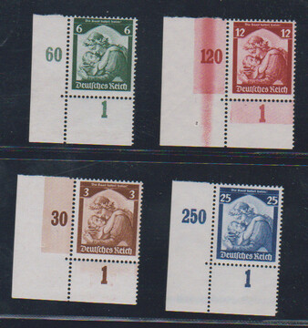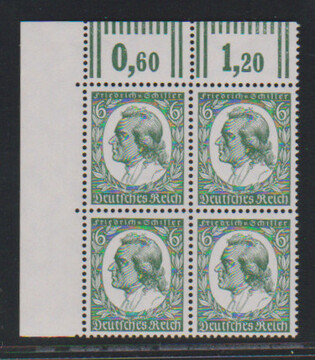Saarabstimmung (6 Pfg. zwei Werte min. Gummifehler), Reichsparteitag und Schiller je in postfrischen Viererblöcken. Mi. 1100,-