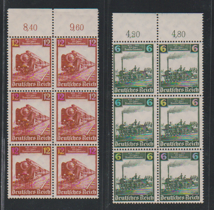 Eisenbahn in postfrischen Oberrand-Sechserblöcken, Mi. 780,- +