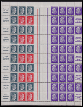 Hitler, Markenheftchenbogen 69 bis 72 komplett ungefaltet postfrisch, Mi. 1000,-