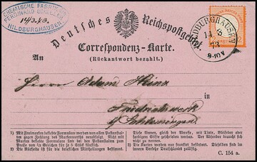 2 Kr. ziegelrot auf Kabinett-Postkarte mit Ra3 von Frankfurt, Mi. 500,-, Karte winziger Randriß (ohne Bedeutung). Sign. Pfenninger und Attest Hennies