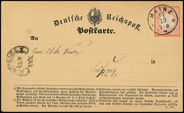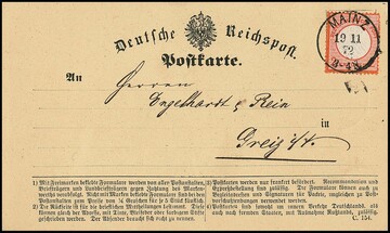 2 Kr. ziegelrot einzeln auf Pracht-Postkarte mit K1 "Mainz" (mit Ziersternen), Mi. 500,-