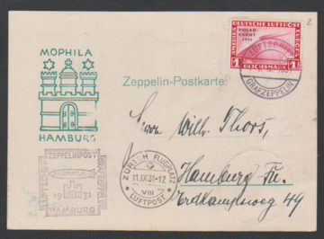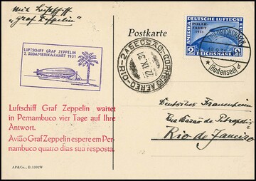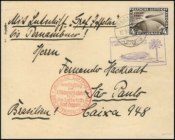 2. SAF 1931, Karte mit 2 RM Polarfahrt (Mi. 430,-) bis Rio de Janeiro