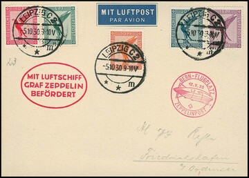 Ostseefahrt 1930, Brief finnische Post ab Helsinki mit zwei Zeppelinmarken zu 10 M.