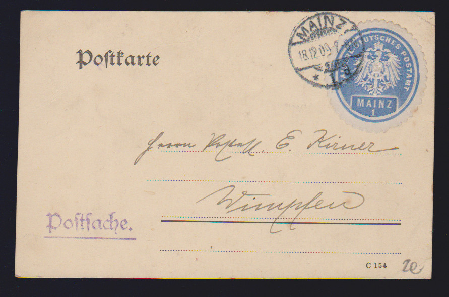 Postscheckdienst, (1890), frühes Vorläufer-Couvert mit hektographiertem Zudruck "Giro I ... an die General-Postkasse" in Berlin gelaufen (typische leichte Mittelfalte)