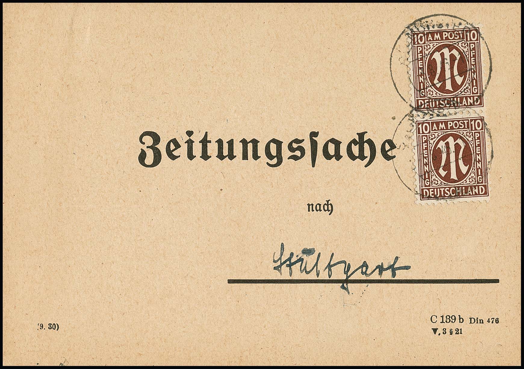 10 Pfg. im Paar als gute Mehrfach-Frankatur-Variante auf "Zeitungssache" aus Salmünster 1946