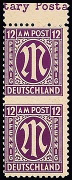 12 Pfg. amerikanischer Druck, senkrechtes postfrisches Randpaar, waagerecht ungezähnt, Fotoexp. Hettler. Mi. 250,-