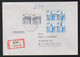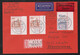 Kleine Bauwerke komplett in Oberrand-Viererblöcken auf sechs portogerechten Briefen